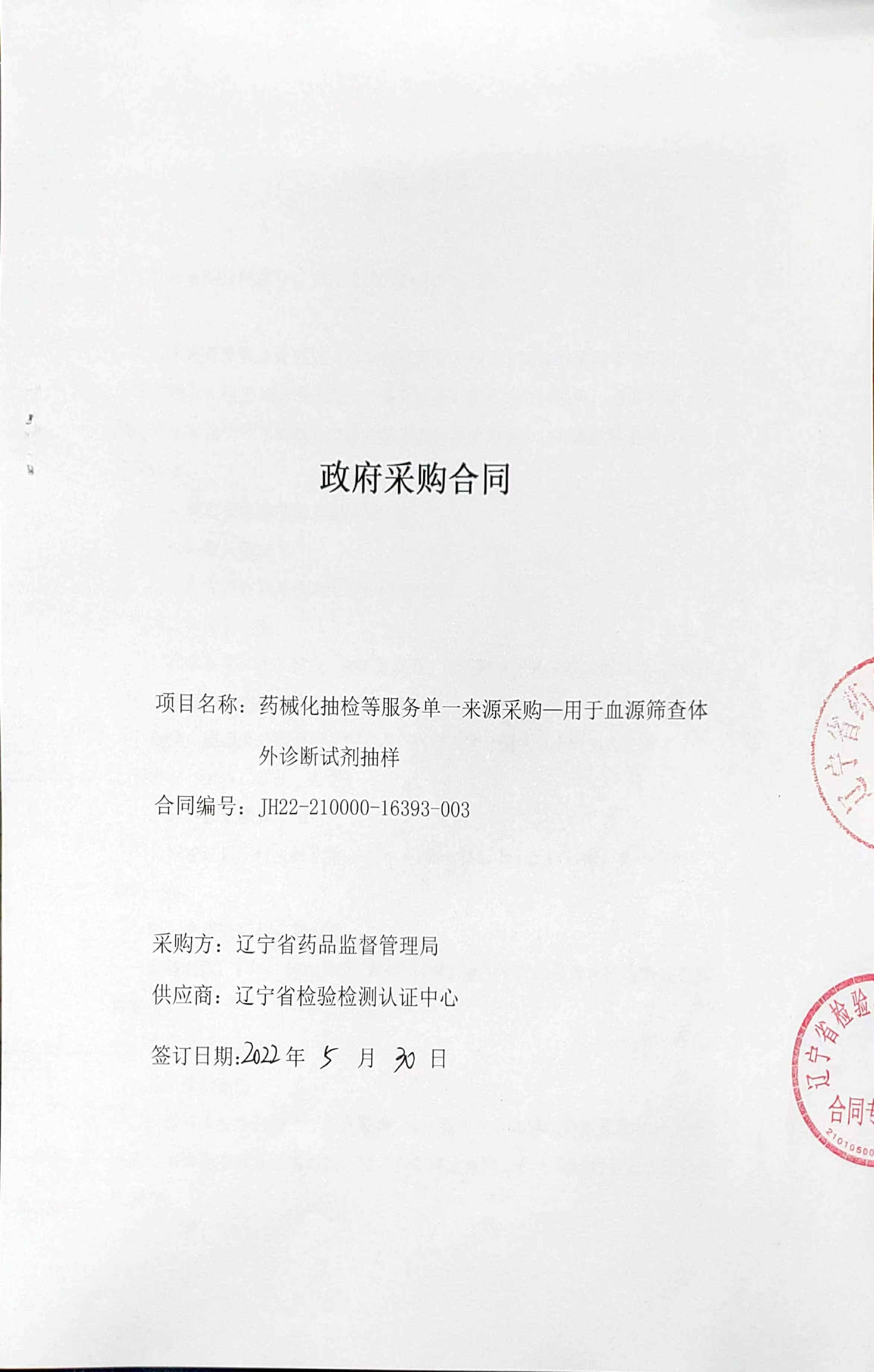 hkjc六合彩结果 用于血源筛查体外诊断试剂抽样服务合同