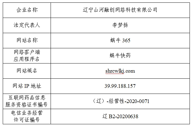 按照《国家药监局关于规范药品网络销售备案和报告工作的公告》(2022年第112号)的相关规定,根据企业申请,我局决定取消辽宁山河融创网络科技有限公司药品网络交易第三方平台备案,备案编号:(辽)网药平台备字〔2021〕第1号。原备案信息如下: